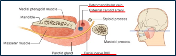 •Enclosed in parotid sheath