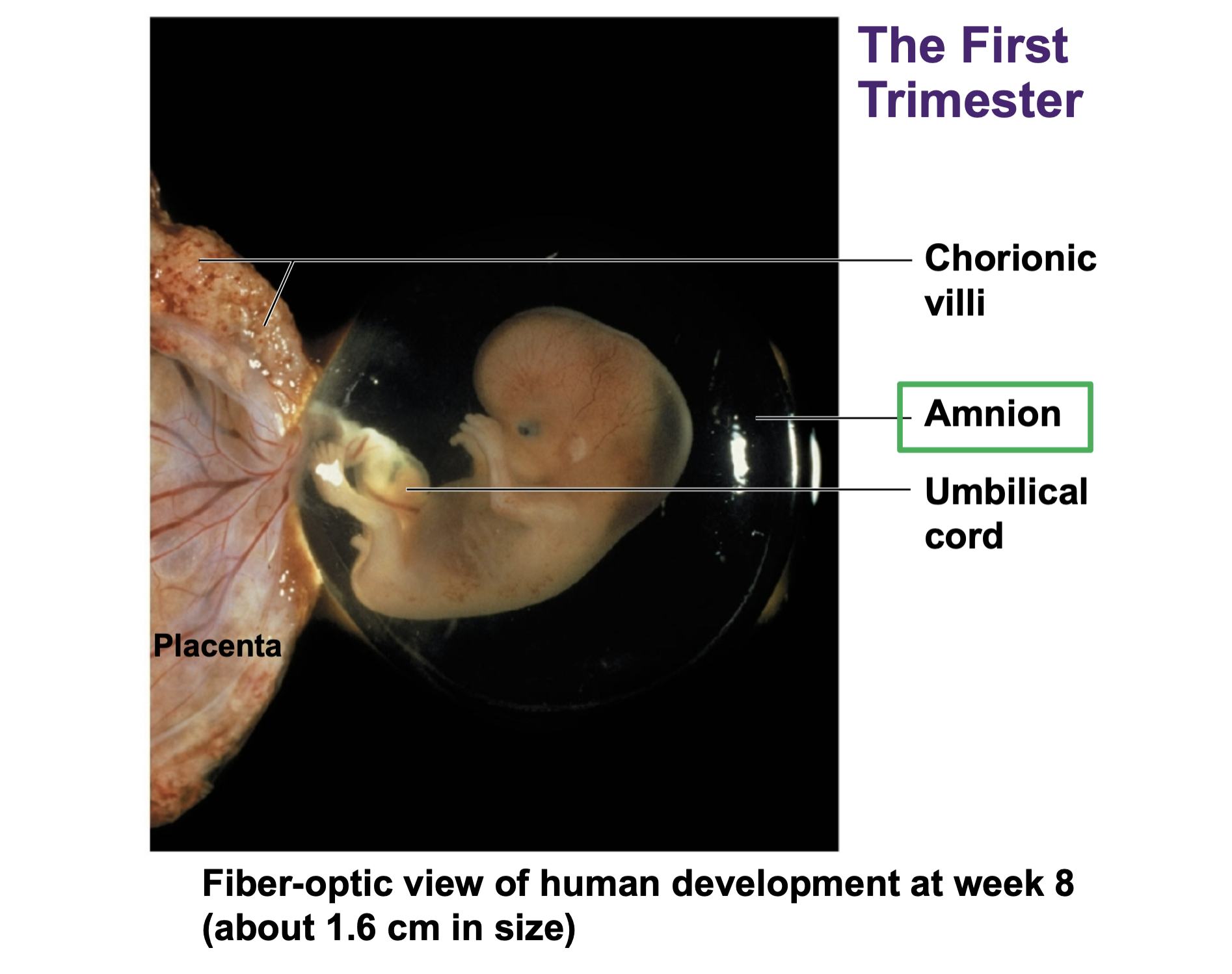 for a woman in labor, when her water breaks, it indicates that the amnion has torn allowing the fluid to escape.