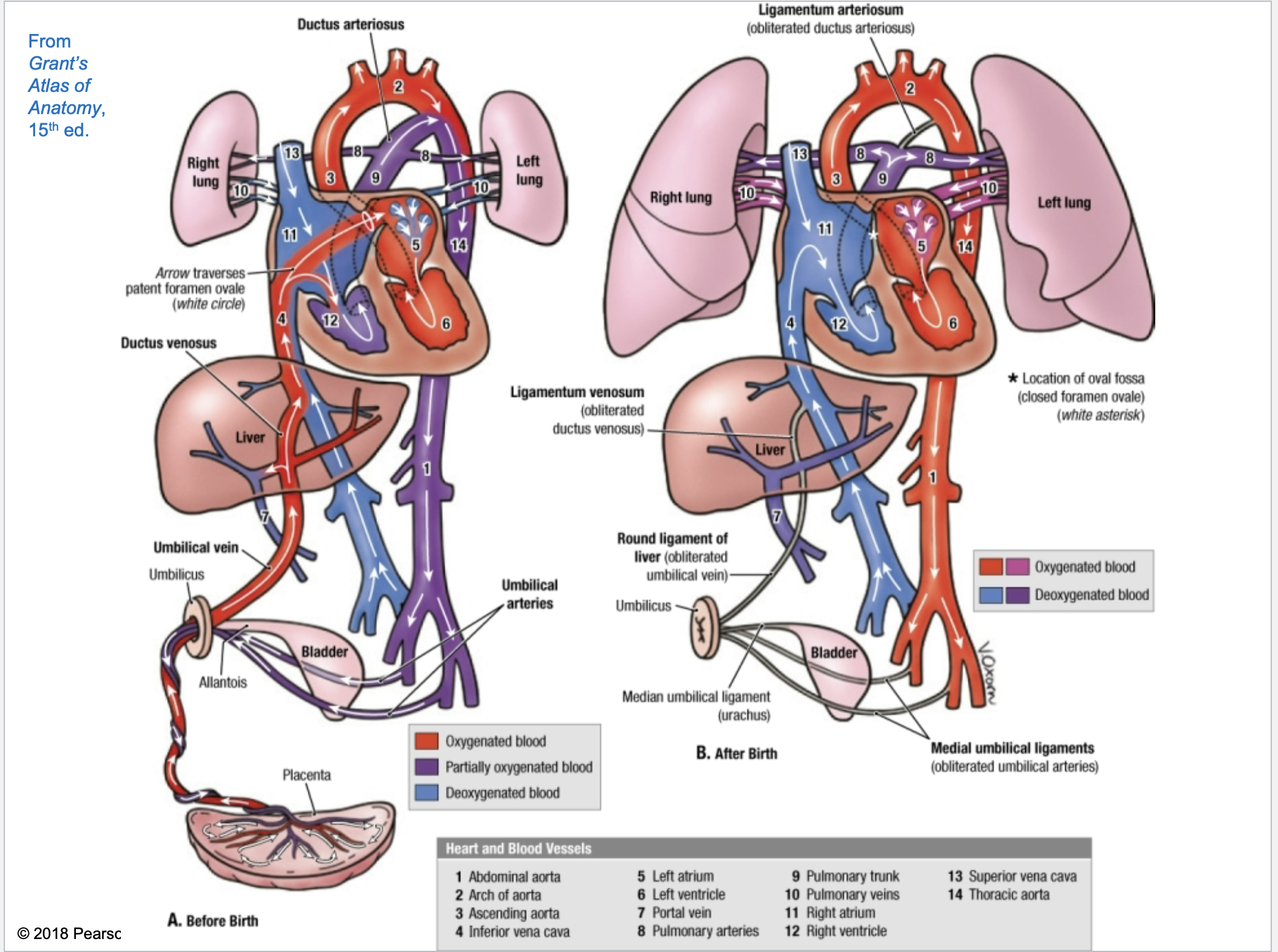 Remember that the fetus is in a liquid environment. There is no mechanical breathing taking place in the fetal lungs. Gas and nutrient exchange is taking place at the interface between the uterine wall and the placenta. It is not necessary in the fetal body to send a significant amount of blood towards the lungs. That is why these bypasses exist. After birth, however, these bypasses should seal off. This then forces blood to enter into the newborn’s lungs.