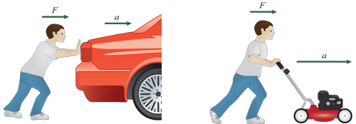 You are pushing a car and you use more force the heavier it is. What else is this?