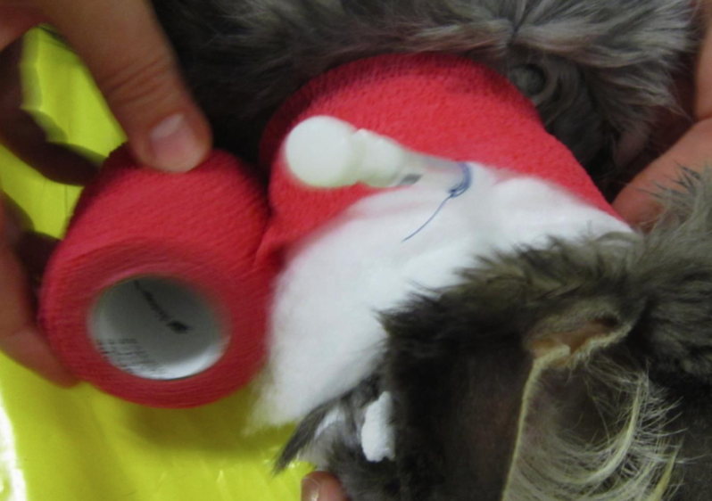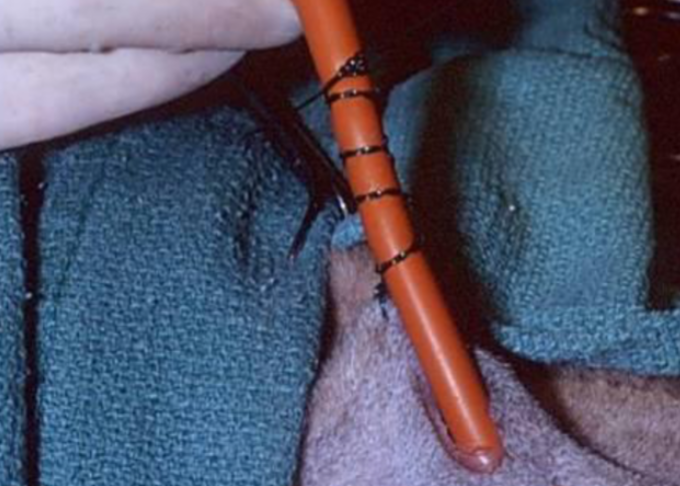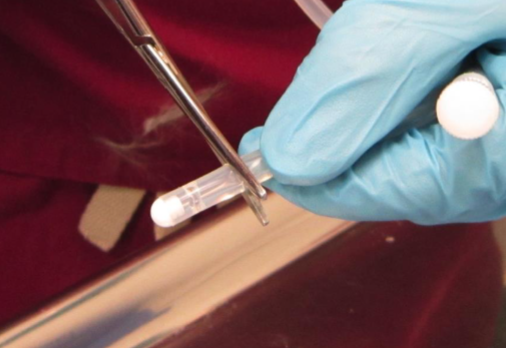 as you are redirecting the tube down the oesophagus, gently pull the excess tubing back out the incision site - will see the tube flip directions