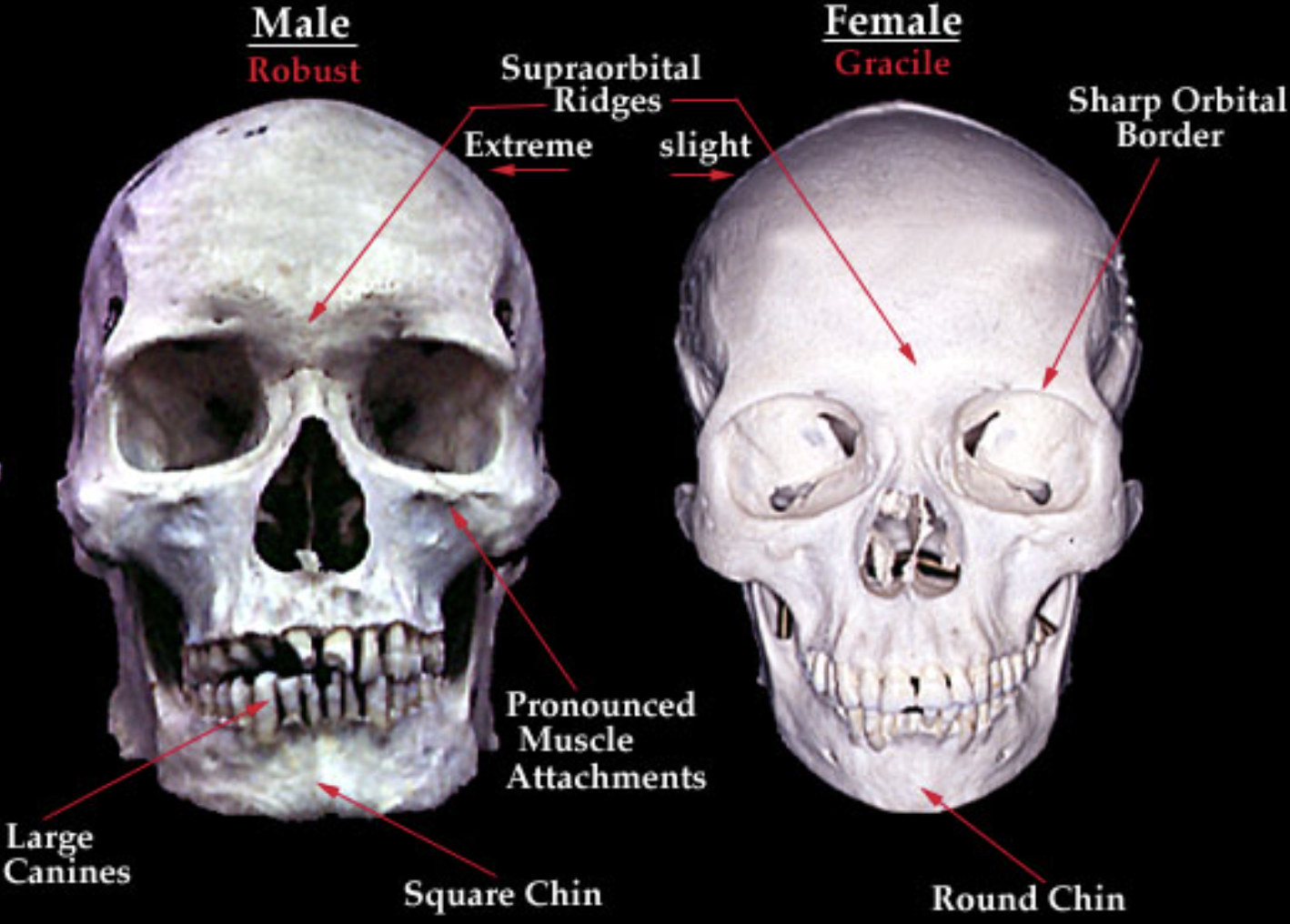 2) Supraorbital ridges → Slight; not as extreme as male skulls