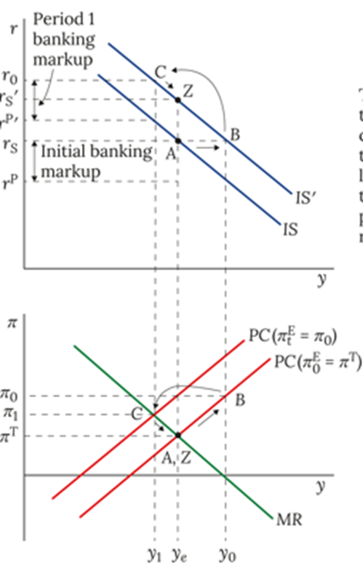 in subsequent periods, CB then gradually reduces the policy rate until the lending rate reaches its new stabilising rate at rs’ and inflation has returned to target