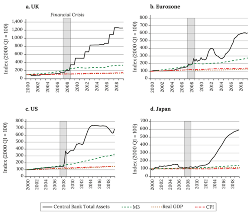 growth in CB assets has significantly outstripped growth in either eal GDP, CPI or money supply