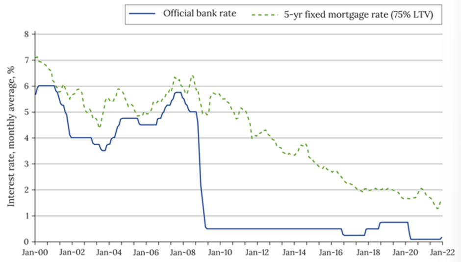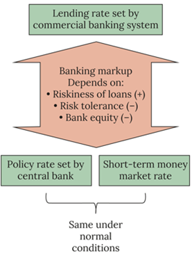 lending rate - markup over the policy rate, chosen by profit-maximising banks