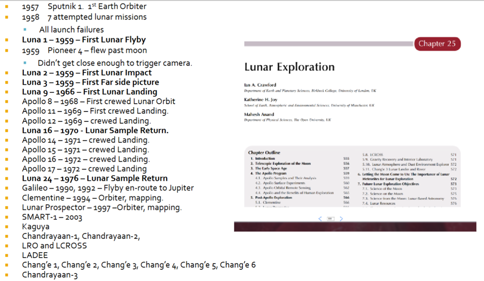 1990s-now: galileo, clementine, lunar prospector, SMART1, kaguya, change 1&2, LRO, LCROSS, LADEE