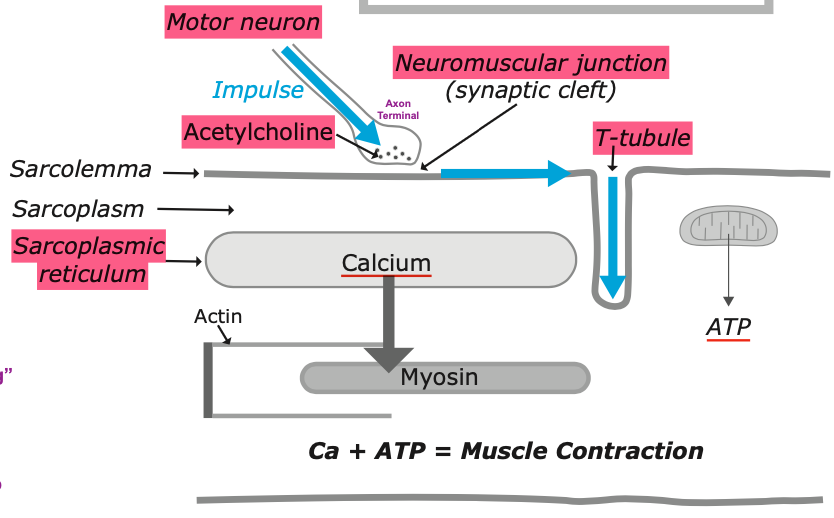 4. Impulse reaches sarcoplasmic reticulum (which wraps around the sarcomeres) and calcium is released