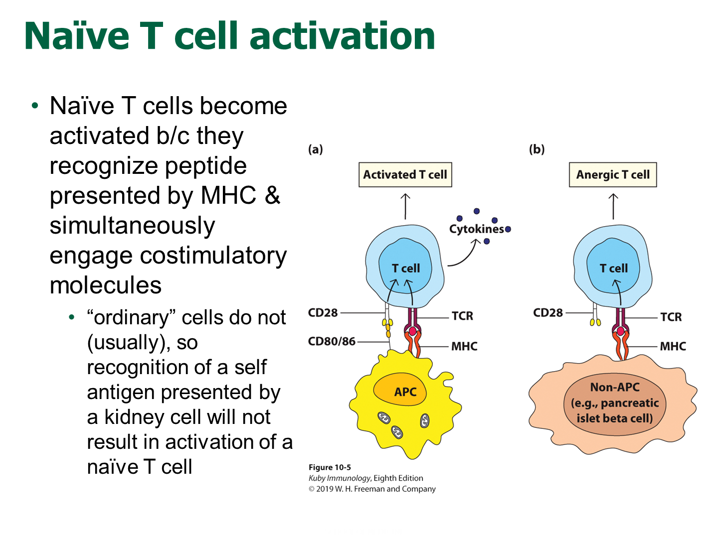 2) Once the T-cell is activated, it can circulate and then no longer requires costimulation that is found on antigen presenting cells