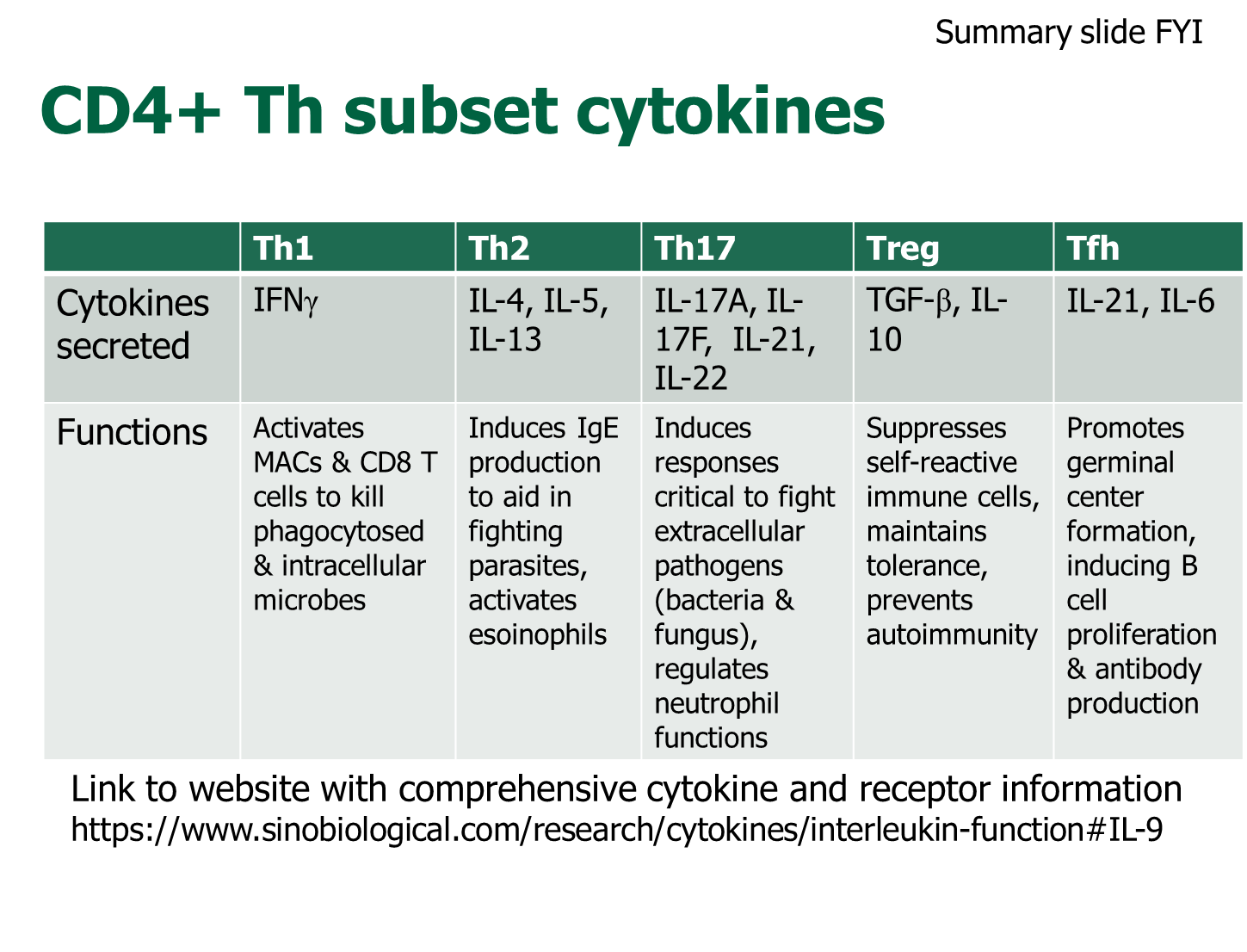 CD4+ T-cells have the ability to differentiate into specialized subsets of T-cells in the presence of specific cytokines. Fully differentiated CD4+ T-cells secrete specific cytokines to direct activity
