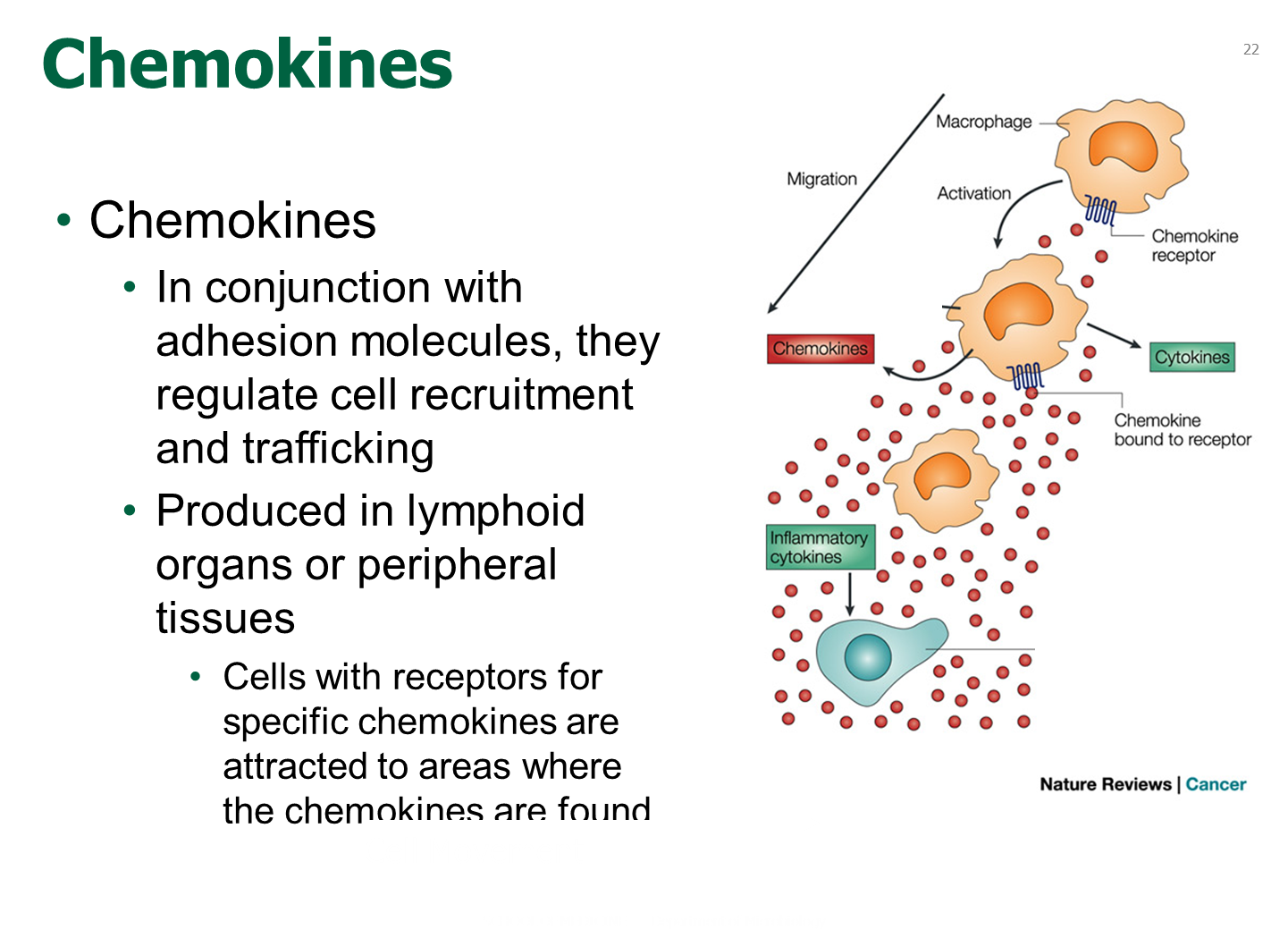 → cells express chemokine receptors and will trigger cells to move based on the highest concentration of the chemokine