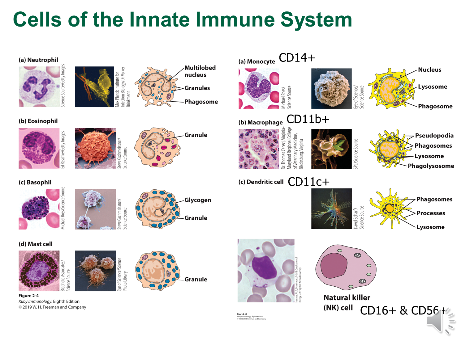 2) Neutrophils are the most numerous and will be recruited to sits of inflammation
