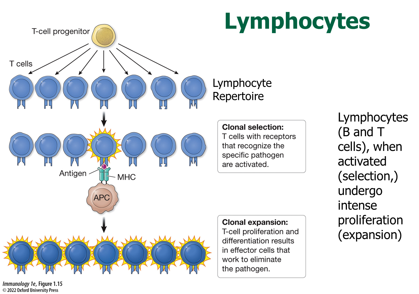 → Cells that do have a receptor capable of recognizing the pathogen are selected (clonal selection)