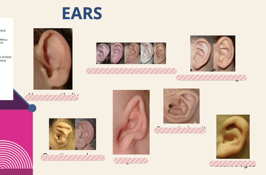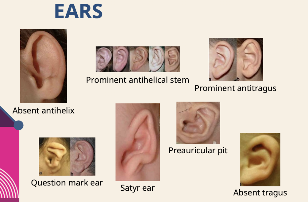 Absent antihelix; Prominent antihelical stem; Prominent antitragus; Question mark ear; Satyr ear; Preauricular pit; Absent tragus