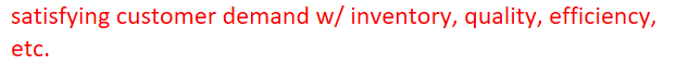 satisfying customer demand w/ inventory, quality, efficiency, etc.