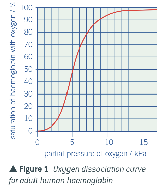 It is rapidly loaded at higher partial pressures like in the alveoli, so become saturated with O2 to form oxyhaemoglobin. The reduced CO2 concentration means the curve shifts to the left, further increasing affinity for oxygen. However as you enter respiring tissues there is a lower O2 partial pressure, so O2 quickly dissociates to release the oxygen. Increased CO2 concentration shifts O2 dissociation curve to the right.