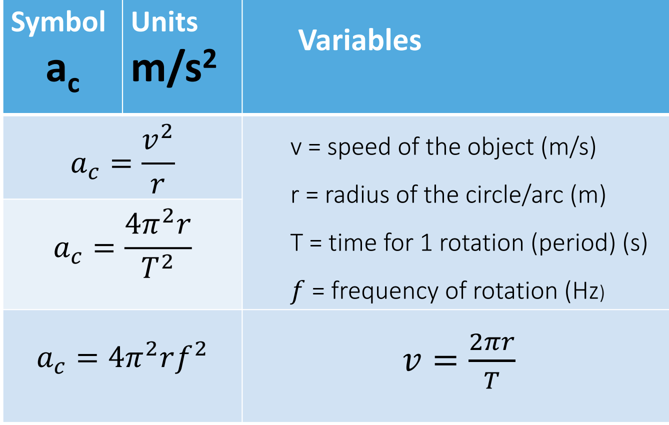centripetal acceleration formulae