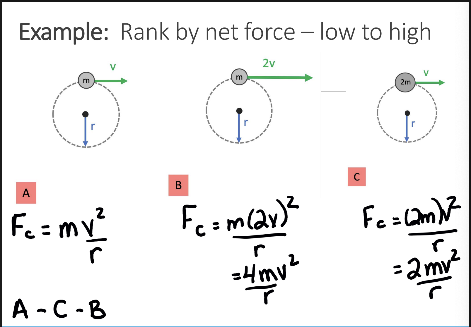 ac tells you the inward accerlation required to keep an object moving in a circle