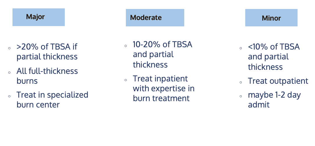 ○Prevent infection and close wound as fast as can. Get meds before debridement. Can use human skin, sheets, different grafts.