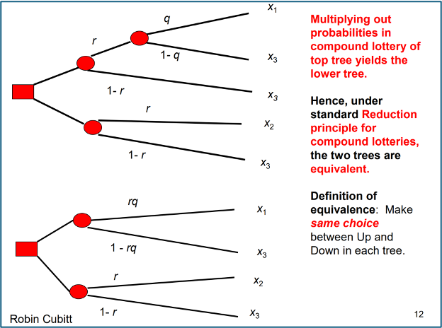 Decision makers under standard thinking are modelled as reducing compound lotteries to a probabilistically equivalent simple lottery by multiplying out probabilities