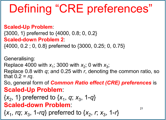 Scaled up vs scaled down CRE preferences - standard reduction of compound lotteries