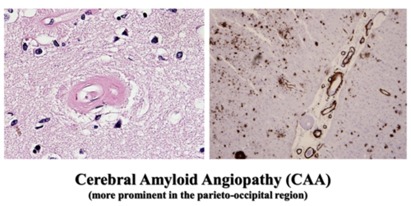 Where is cerebral amyloid angiopathy (CAA) more prominent?