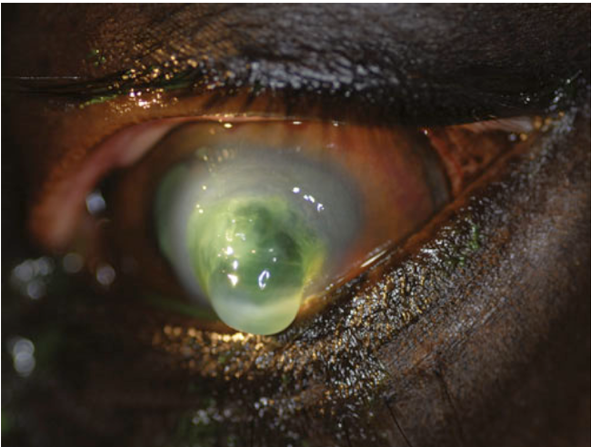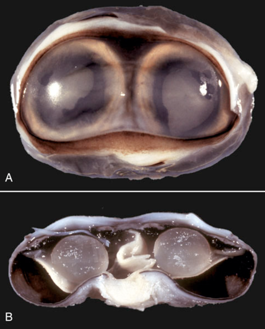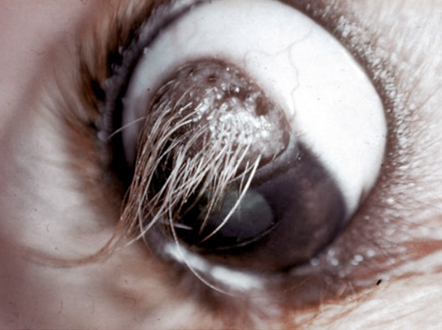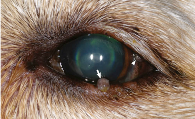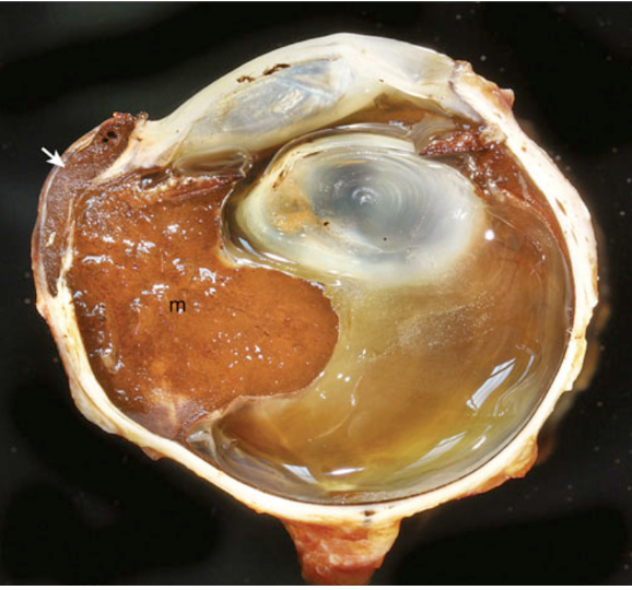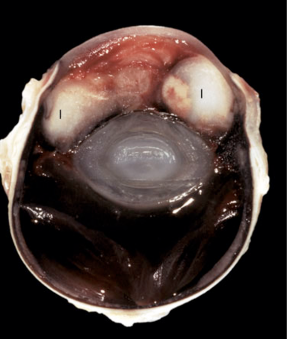 if they contact the lens (cataract) or the cornea (fibrous dysplasia and opacity) where they can interfere with proper development