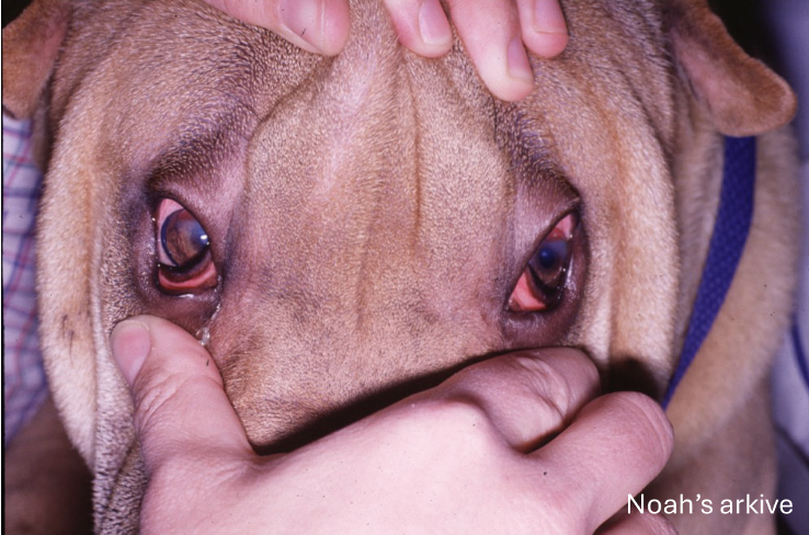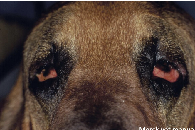 dry eye, common in dogs, or inadequate tear film resulting in: