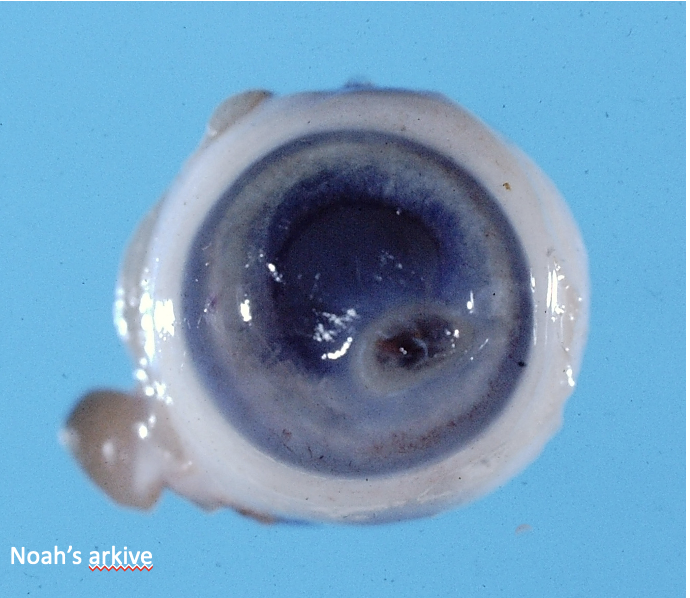failure of the optic fissure to close (in the last 3rd of gestation) resulting in an outgrowth of the retina through the defect → concurrent choroidal and scleral hypoplasia most often seen adjacent to the optic nerve