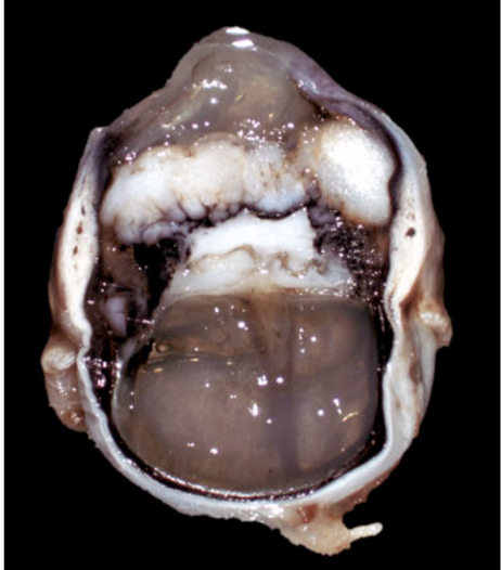 phacoclastic uveitis: immune mediated disease resulting in the release of large amoutns of lens protein → foreign body reaction → granulomatous inflammation