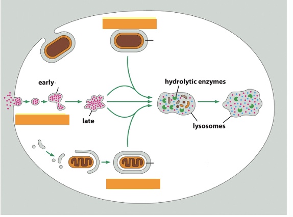 phagocytosis, endocytosis, autophagy