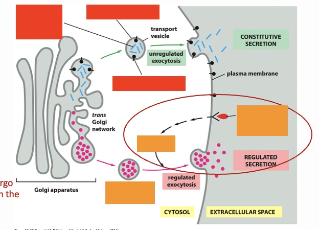 secretory pathways: label the orange left to right (regulated exocytosis)