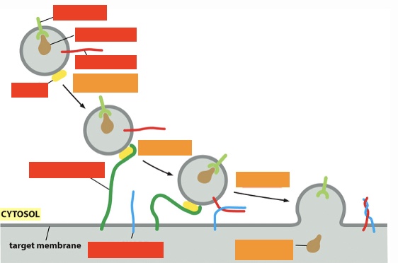 exocytosis: label the lower 3 proteins on left (top to bottom)