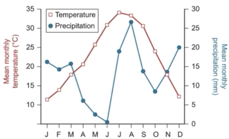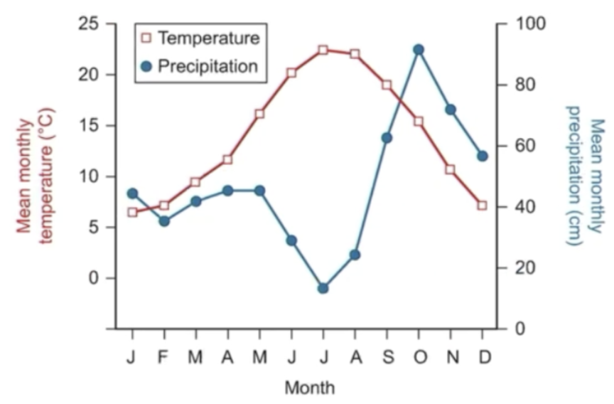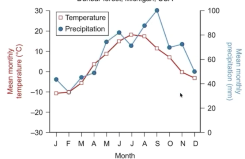 Temperate Forest, not always warm, temp & precipitation lines mirror