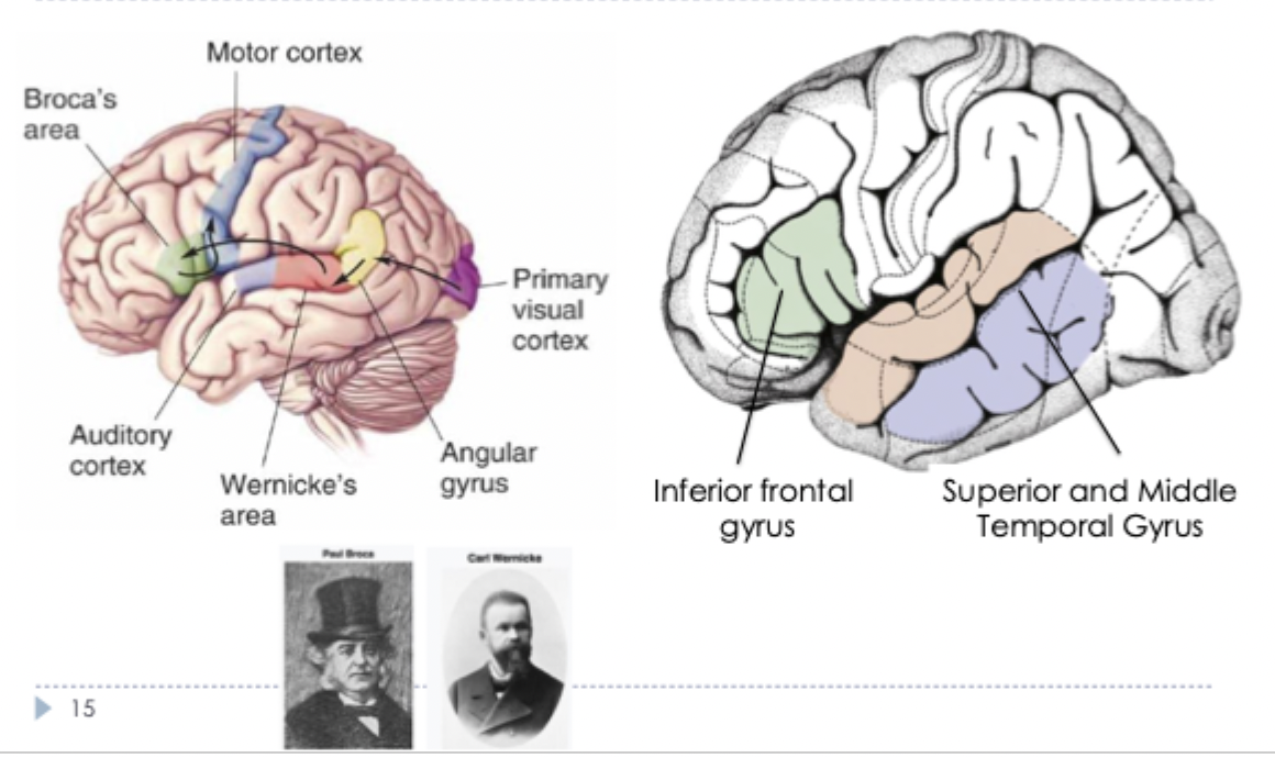 superior and middle temporal gyrus = to do with words and representations of info about the world