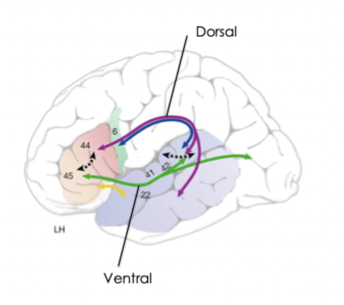 sound repetition (involved in first and second language learning) engages the dorsal route