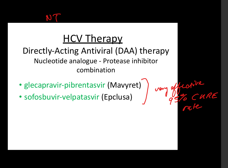 DAA therapy: sofosbuvir‑velpatasvir or glecaprevir‑pibrentasvir (~95% cure).