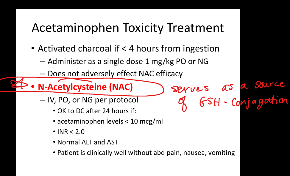 Activated charcoal (<4 hrs) + NAC(N-Acetylcysteine).