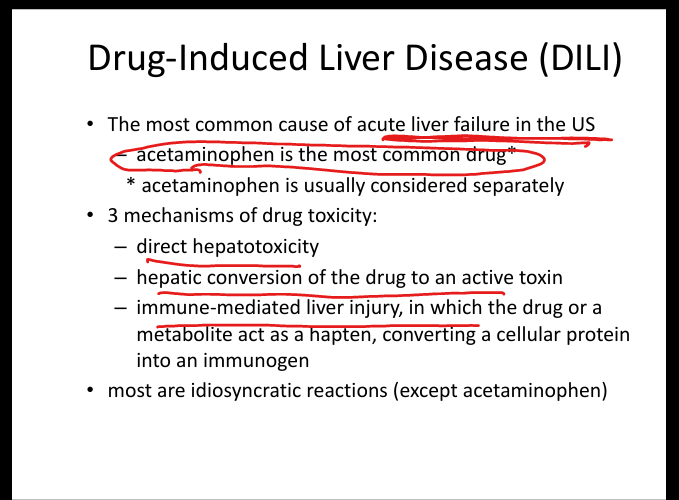 Drug Induced Liver Disease (DILI)==>Acetaminophen toxicity.