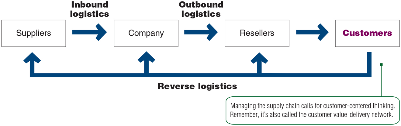 Define inbound, outbound, and reverse logistics.
