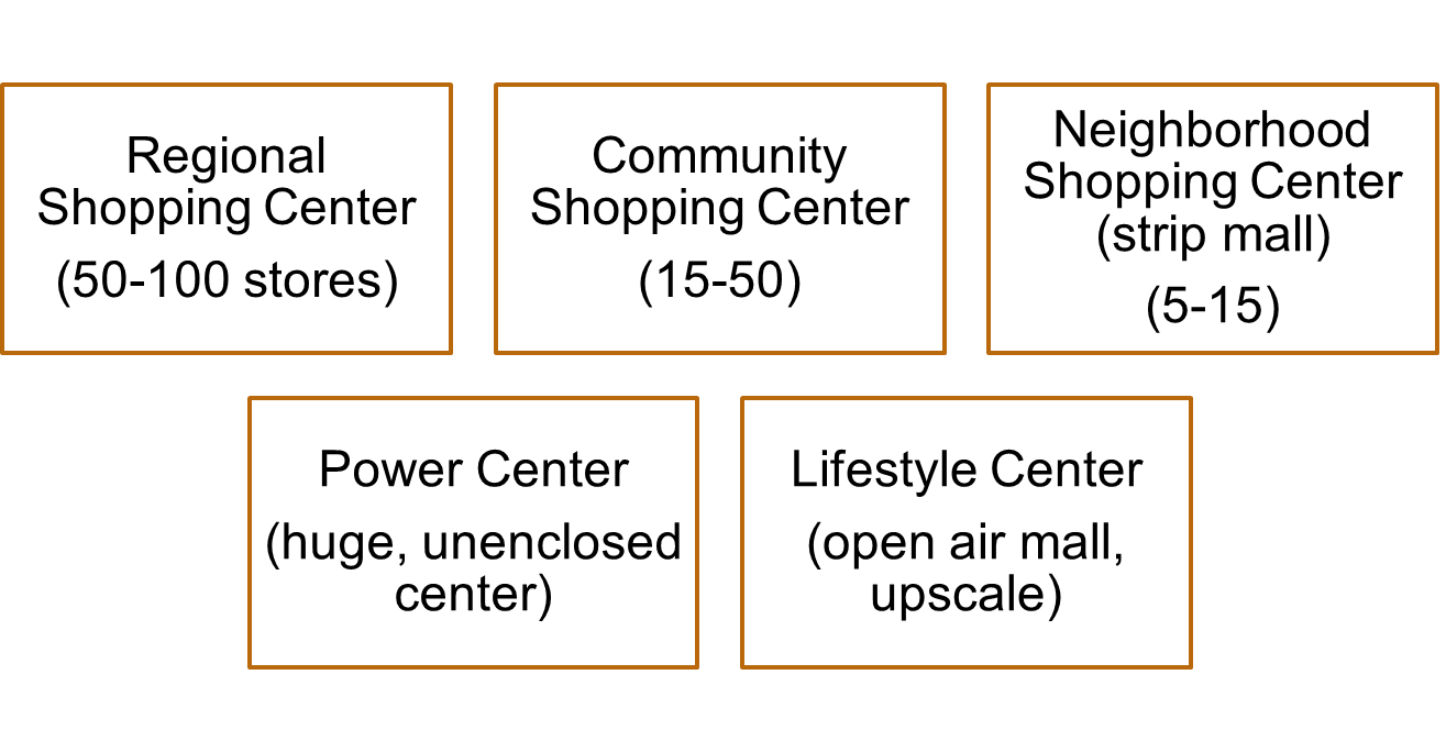 Be familiar with the different shopping center types.