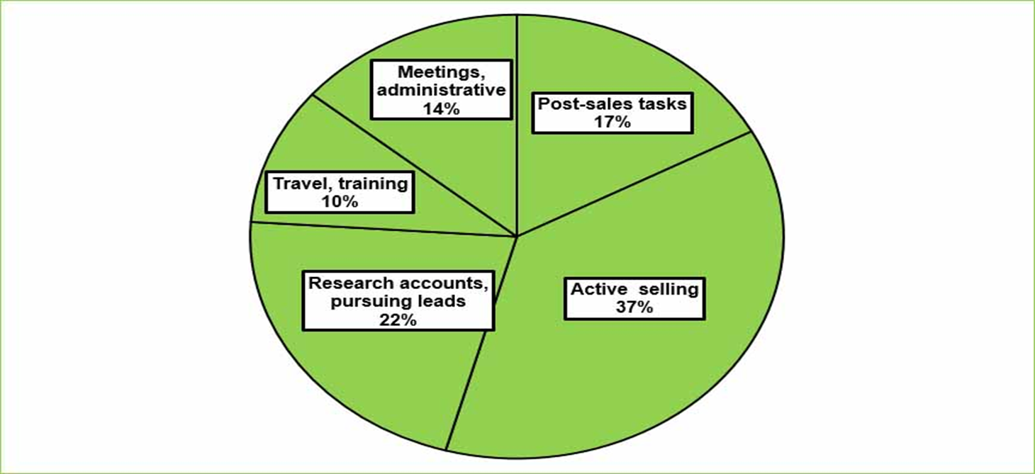 Fill in the following regarding how salespeople spend their time: 10% on what? 14%? 17%? 22%? 37%?