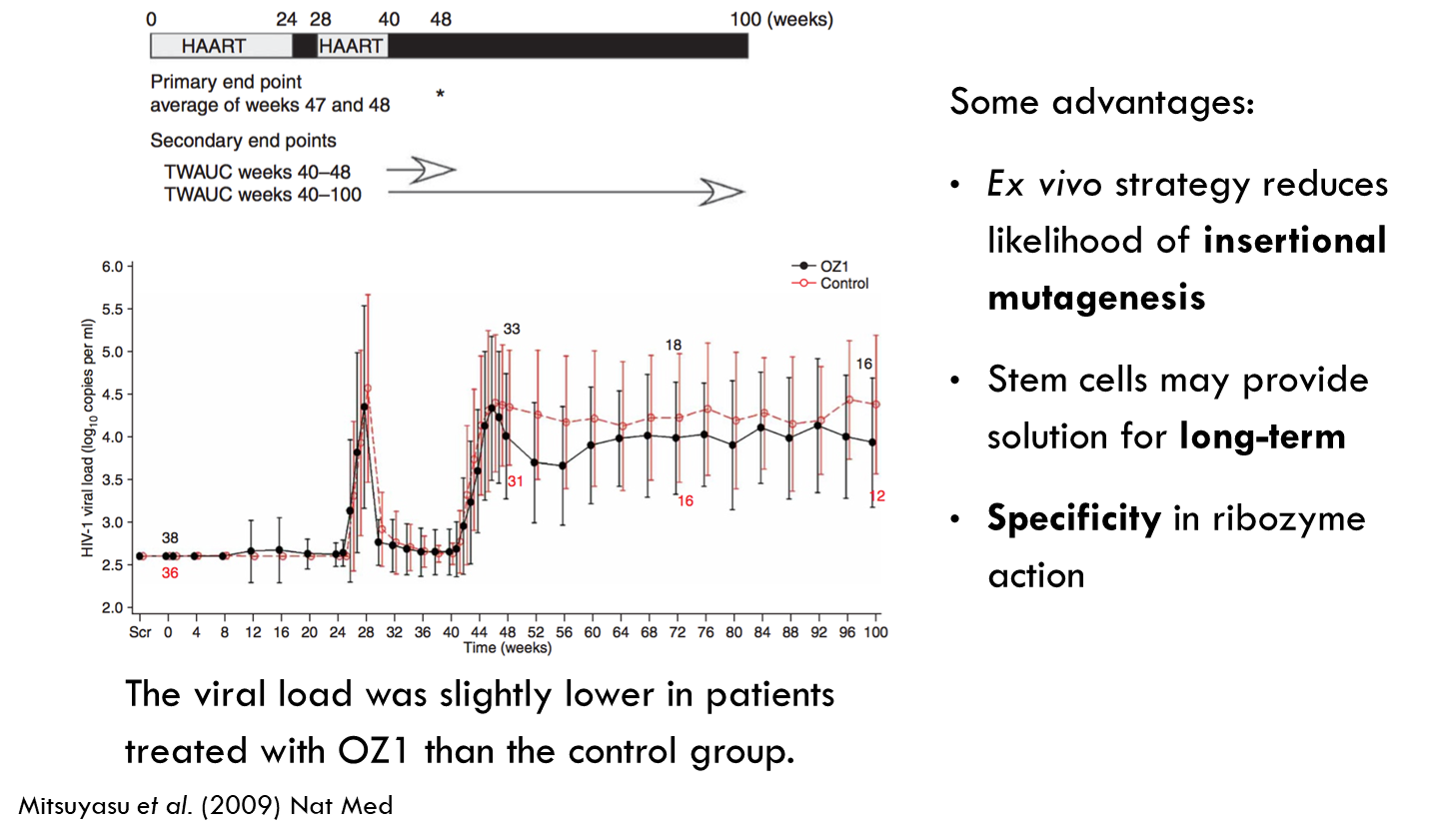 •Ribozyme targeting HIV-1 tat/vpr genes - OZ1. Remember that ribozymes are molecules of RNA that specifically cleave at a certain point.