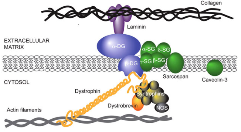 •Major protein in the dystrophin-associated protein complex (DAPC)