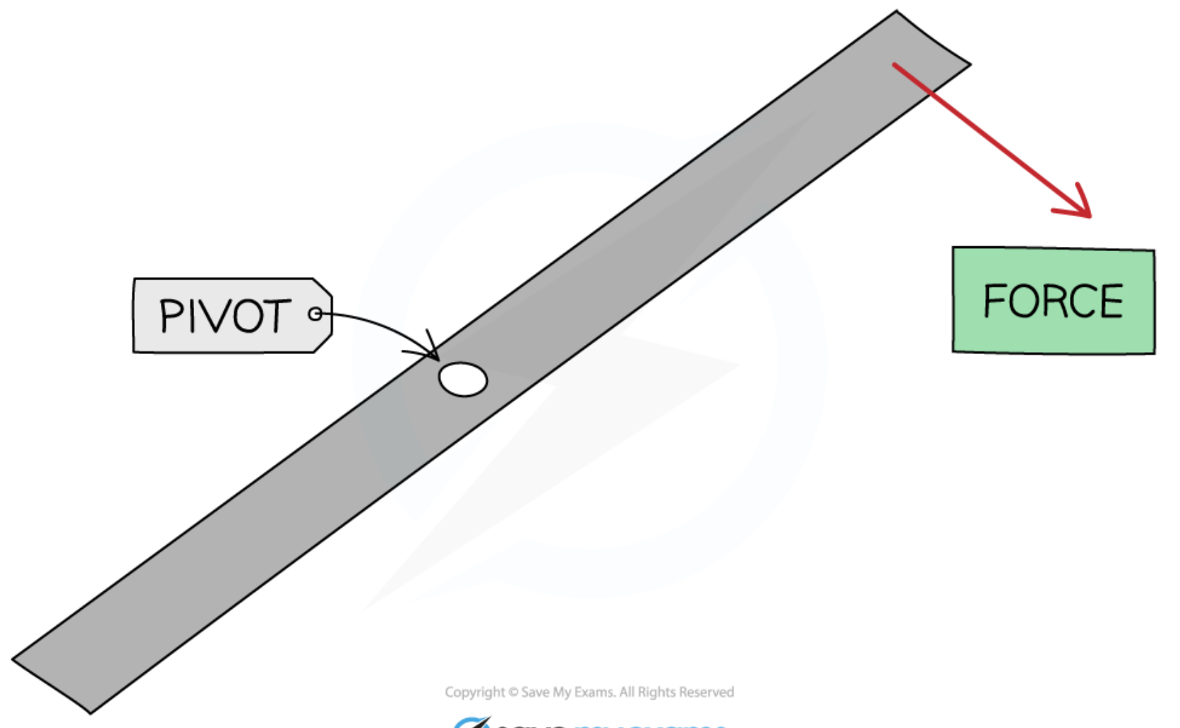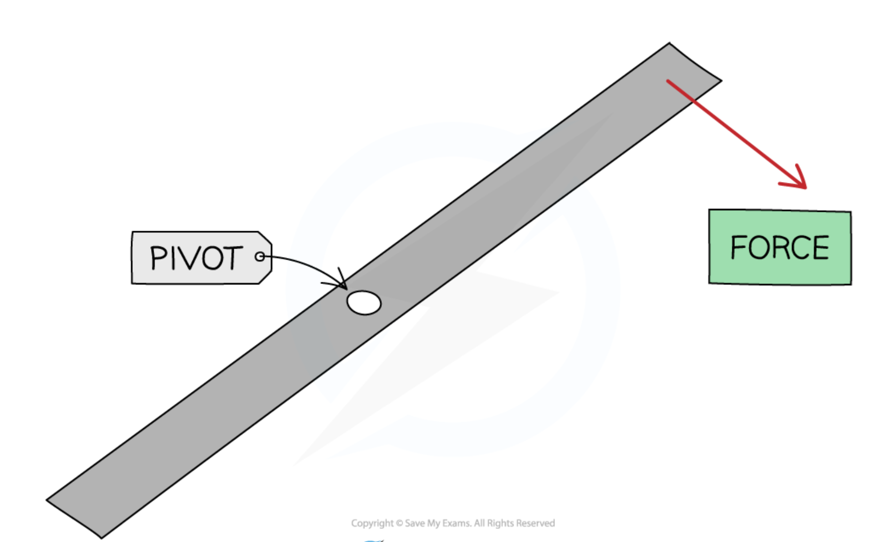 Diagram of turning effect of force about a pivot:
