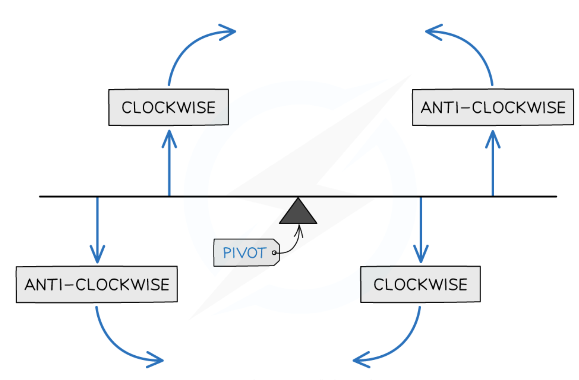 If an object is balanced, the total clockwise moment about a pivot equals the total anti-clockwise moment about that pivot