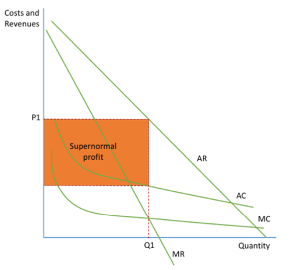 However, x-inefficiencies, sales/revneue maximising, profit satisfying or contestability wont allow for profit maximisation.