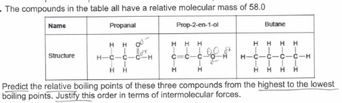 Butane has a boiling point lower than propanal which has a boiling point lower than prop-2-en-1-ol