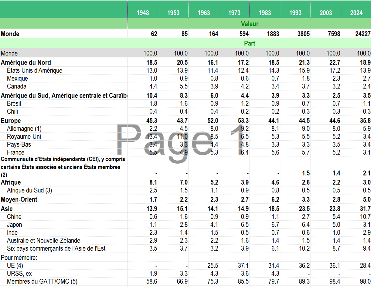 Exportations mondiales de marchandises (En milliards de dollars et en pourcentage)