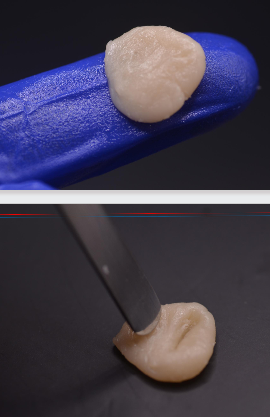 Clinically, mass behaves as a pliable dough (no longer sticks to the surface of