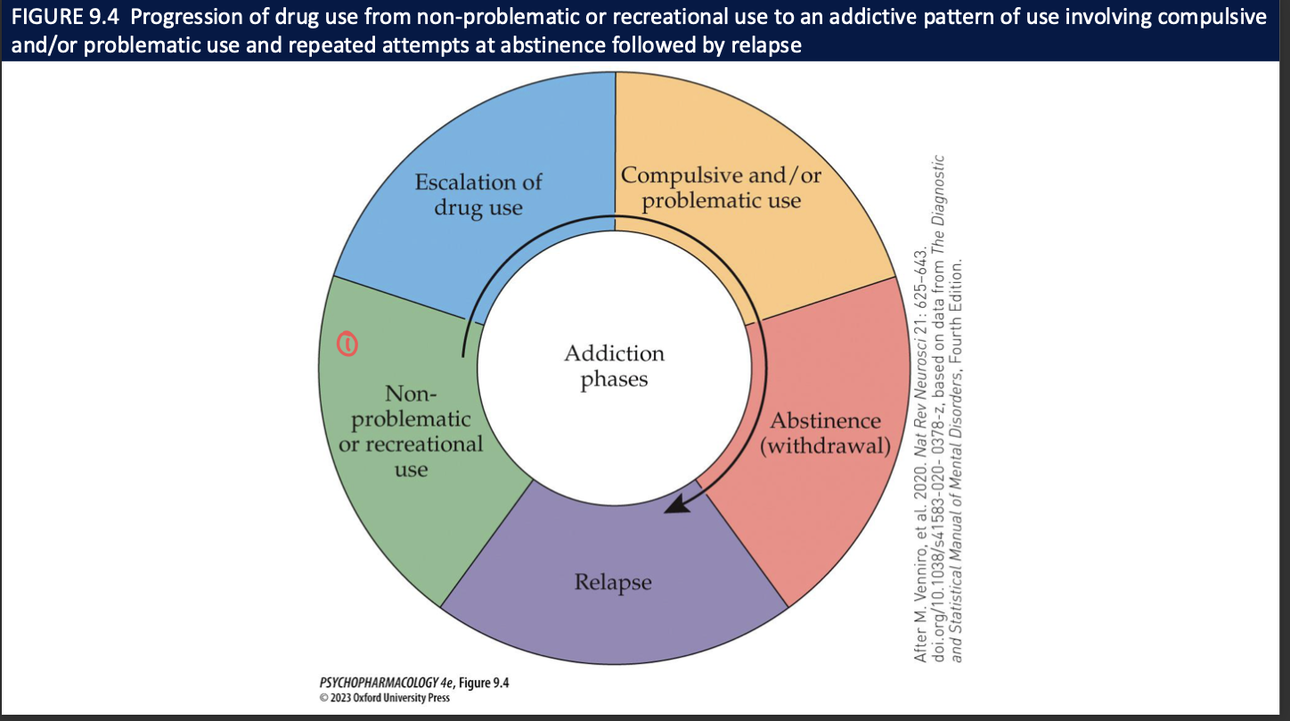 development of addiction has been conceptualized as a repeating cycle of 3 stages: